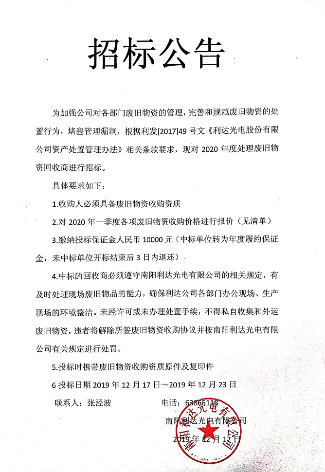 - (2025-07-17)利達(dá)光電公開招聘財(cái)務(wù)部部長擬錄用人員公示