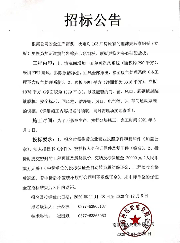 - (2022-09-29)光電新區(qū)三期廠房一層裝修施工的招標公告