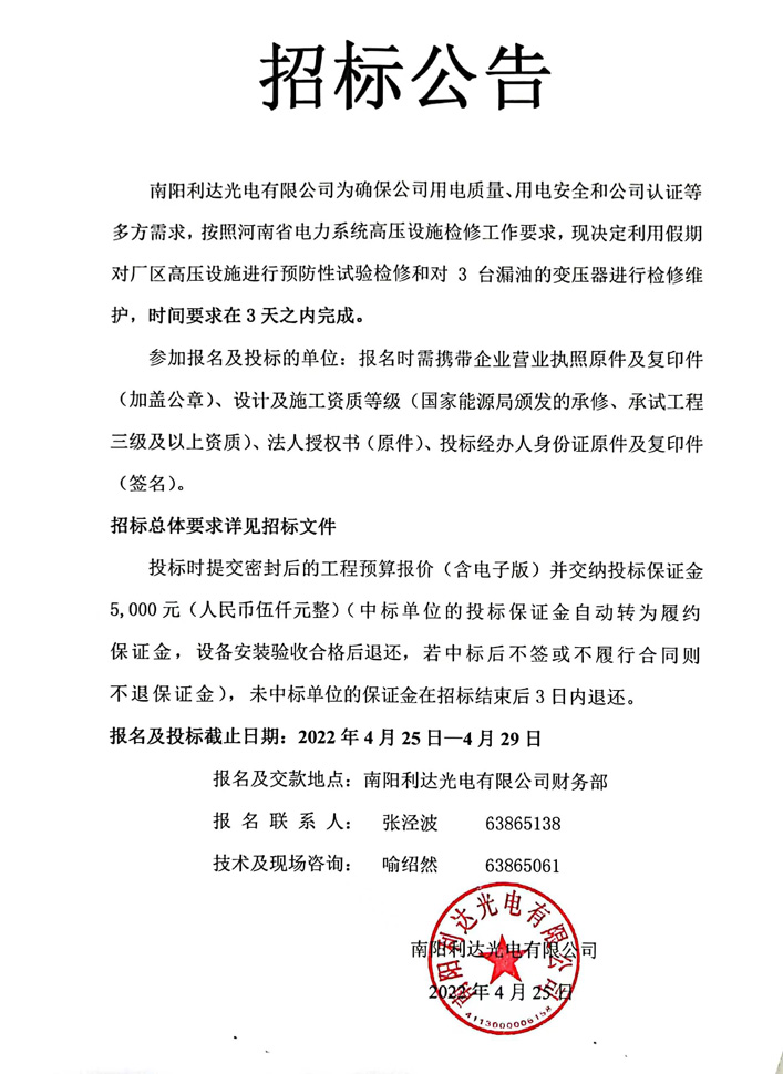 高壓設施預防性試驗檢修招標公告