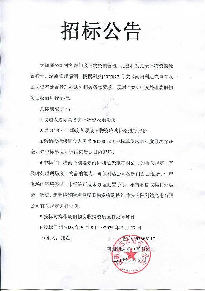 - (2023-05-08)廢舊物資招標(biāo)公告